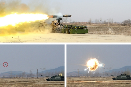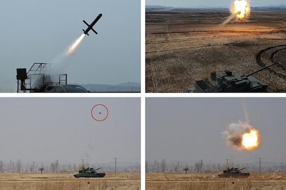 경애하는 김정은동지께서 국방과학원 장갑무기연구소에서 조직한 시험을 참관하시였다