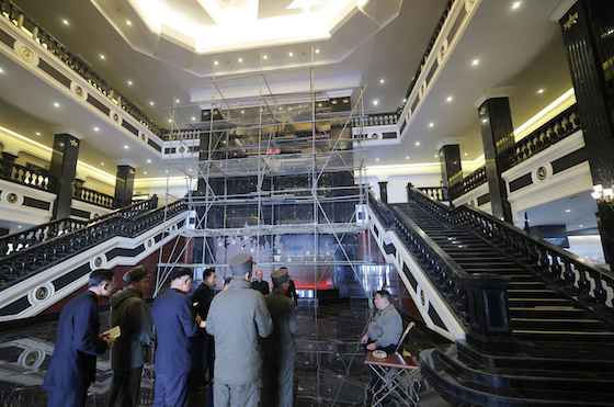 조선로동당 총비서이시며 조선민주주의인민공화국 국무위원장이신 경애하는 김정은동지께서 해외군사작전 전투위훈기념관건설장을 현지지도하시였다.