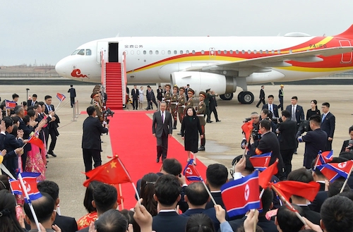 비행장에서 군중들이 조중 두 나라 기발을 흔들면서 중국의 벗들을 환영하였다.(전문 보기)