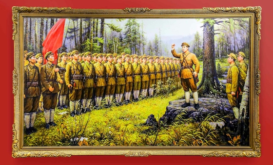 무장한 적과는 무장으로 싸워이겨야 하며 조선의 독립은 조선사람자체의 힘으로 이룩해야 한다는 투철한 신념과 견결한 의지를 안으시고 1932년 4월 25일 주체형의 첫 무장력인 조선인민혁명군을 창건하신 위대한 수령님.