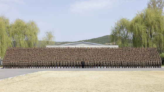 김정은동지께서는 조선인민혁명군창건일을 뜻깊게 맞이하는 려단의 전체 장병들을 사랑의 한품에 안으시고 건군사에 길이 남을 기념사진을 찍으시였다.