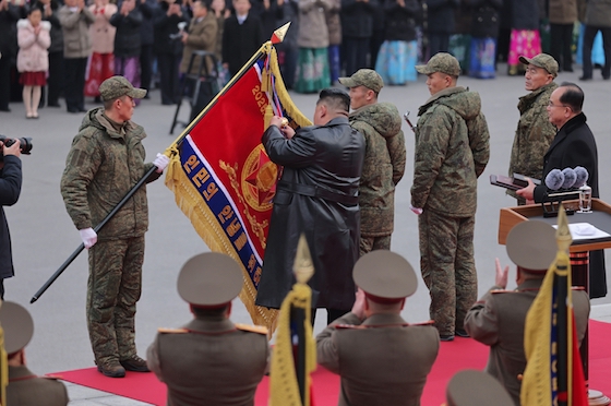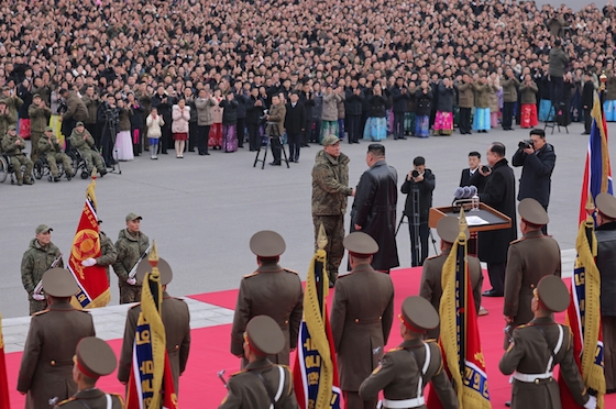 김정은동지께서는 사상으로 불패하고 사상으로 더욱 강해지는 혁명군대의 승리와 발전의 법칙을 해외전장에서 남김없이 실증한 영용한 전투원들이 조선인민군의 존엄과 명예를 우리 세대의 값비싼 군공으로 줄기차게 빛내여가리라는 기대와 확신을 표명하시면서 그들과 건군사에 길이 남을 뜻깊은 기념사진을 찍으시였다.