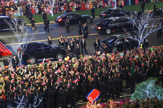 조선로동당 총비서이시며 조선민주주의인민공화국 국무위원장이신 경애하는 김정은동지께서 환영식에 참석하시였다.