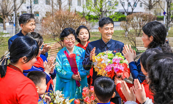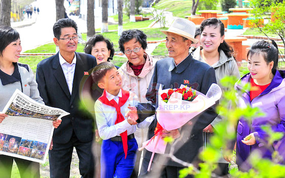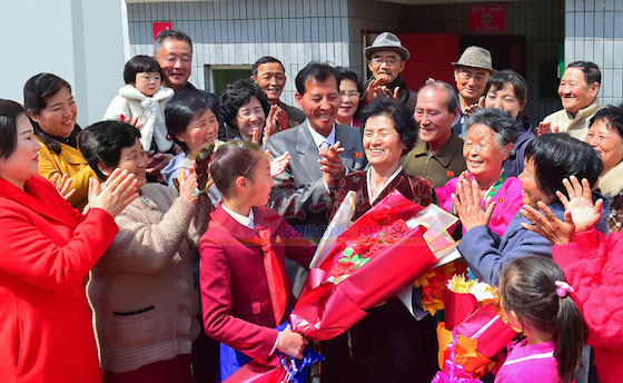 환영식장에서 수령과 전사들사이에 고결한 육친의 정이 오가는 가슴뜨거운 모습은 우리 조국이 과연 무엇으로 위대하고 우리 군대가 무슨 힘으로 강한가를 웅변으로 보여주는 감동깊은 화폭이였다.