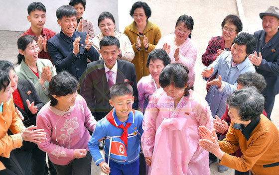 김정은동지께서 연설을 마치시자 전체 참가자들은 꿈결에도 그립던 어버이품에 다시 돌아와 안긴 끝없는 감격과 행복, 위대한 령장의 축복을 받아안은 무상의 영광과 기쁨에 넘쳐 김정은동지를 우러러 《만세!》의 우렁찬 함성을 또다시 터치였다.