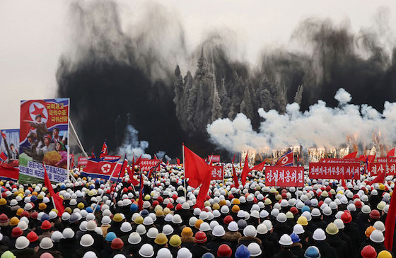 김정은동지께서 도착하시자 탁월한 군사전략사상과 비범한 령군술, 대해같은 믿음과 사랑으로 우리 무력을 사상정신과 전략전술의 확실한 우세로써 승리만을 떨치는 무적의 강군으로 키워주시는 백전백승의 강철의 령장을 우러러 우리 군대와 인민이 터치는 《만세!》의 우렁찬 함성이 12월의 하늘가로 끝없이 메아리쳤다.