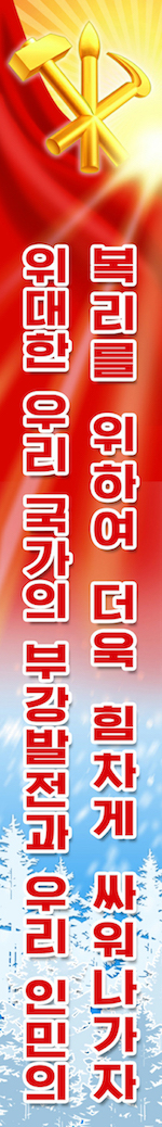 성스러운 애국의 보무에 더욱 과감무쌍하여 변혁의 전성을 이룩해나갑시다.