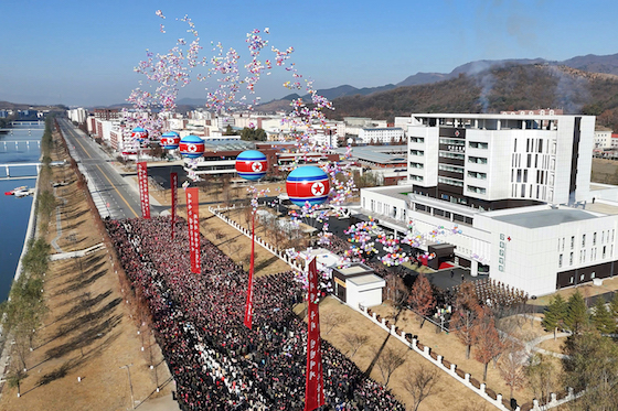 새시대 국가건설사에 특기할 력사의 화폭이 펼쳐진 준공식장에 꽃보라가 흩날리고 수많은 고무풍선들이 날아올랐다.