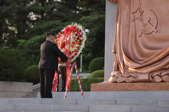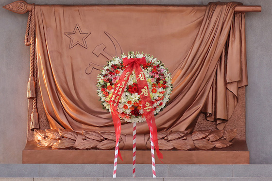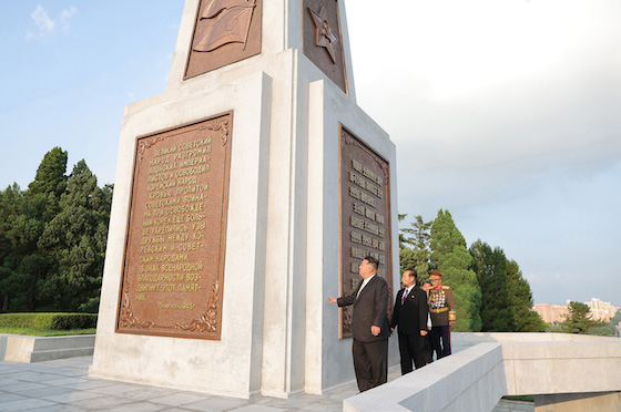 김정은동지께서는 조선의 해방을 위한 성전에 참전하여 용감히 싸운 쏘련군렬사들에게 숭고한 경의를 표하시였다.